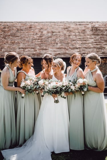 At Emily Edith Bridal, we have two unique ranges of bridesmaid dresses to suit all bridal parties: our WOVN collection of mix-and-match satin and crepe dresses and our exclusive multiway dresses.