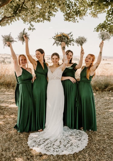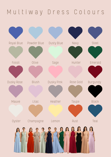Our exclusive multiway bridesmaids dresses offer full versatility. They can be tied endless ways to offer a wide range of styles, come in up to 30 colours and best of all, are extremely comfortable. Choosing these dresses for your wedding day means each of your bridesmaids will feel confident and comfortable all day!